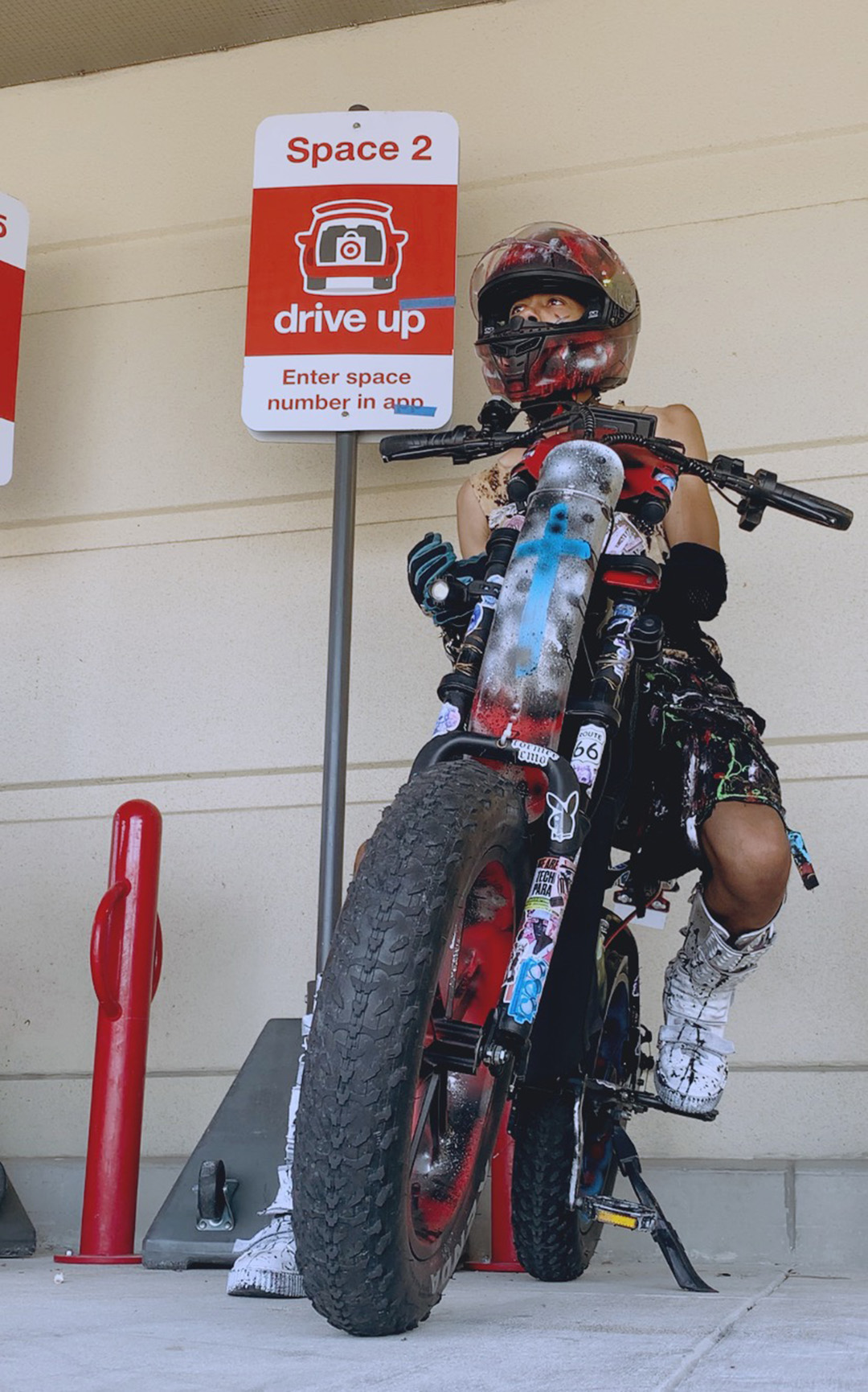 I did about 15-16 miles on the bike today. She was keeping up with traffic today oddly with her 30mph legs.